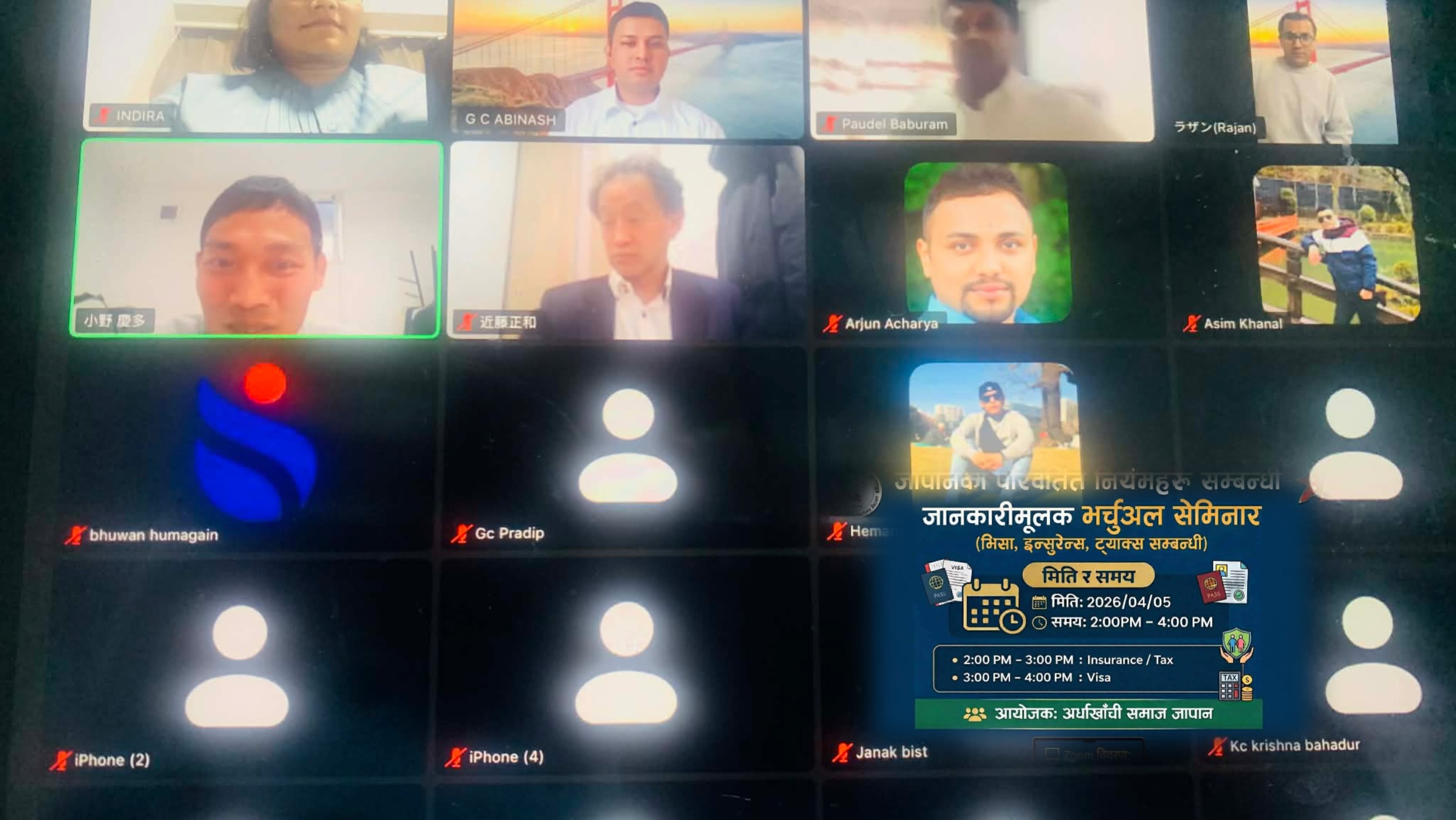 जापान सरकारले सामाजिक सुरक्षा प्रणाली अन्तर्गत पर्ने “स्याकाई होक्केन” लाई अनिवार्य बनाएसँगै यहाँ बसोबास गर्ने नेपालीहरूका लागि भिसा नवीकरण र कानुनी अवस्थासँग सम्बन्धित विषयहरू थप कडाइका साथ लागू हुन थालेका छन् । यसै सन्दर्भमा अर्घाखाँची समाज जापानले विज्ञहरूसँग अनलाइन सेमिनार आयोजना गरी आवश्यक जानकारी प्रदान गरेको छ।