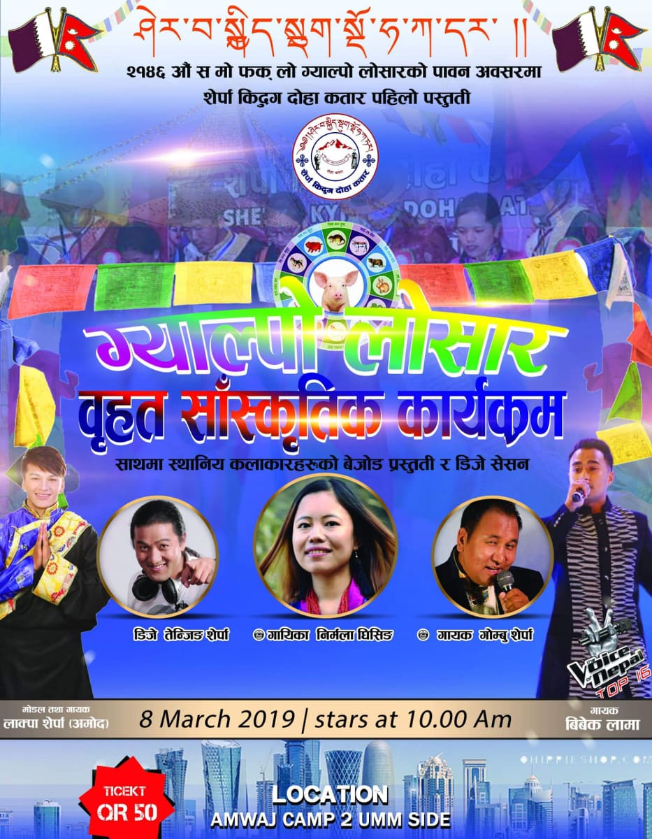 मार्च ८ मा शेर्पा किदुक दोहा कतारले लोसार कार्यक्रम गर्दै