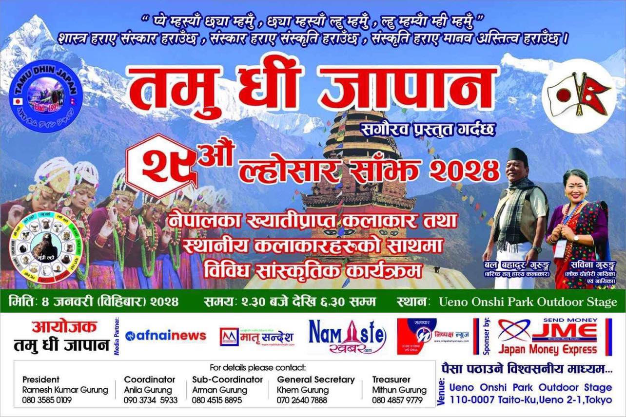 तमु धीं जापानको २९ औं ल्होसार साँझ जनवरी ४ मा हुने