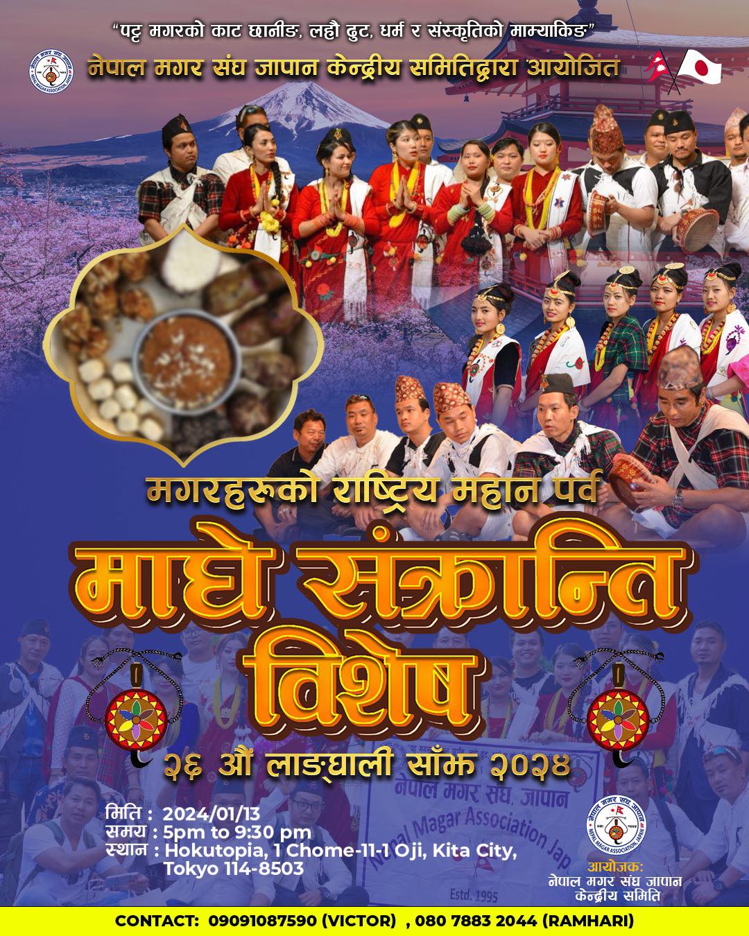 नेपाल मगर संघ जापानले माघे सक्रान्तिमा २६ औ लांङ्घाली साँझ-२०२४ गर्ने